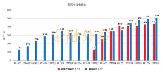 到2017年四季度,陌陌的直播視頻會員數才實現了本年內的第一次微弱增長,從410萬增長到430萬,環比增長4.9%。到2018年Q1,增長速度繼續放緩,環比增速掉到了2.3%。