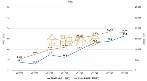 對此,陌陌在財報中反覆強調了另一個指標:用户平均收入,並表示這一指標在不斷增長。以2016Q2起的數據為參考,陌陌直播視頻業務的平均客單價的確在增長,但陌陌為此付出的代價也是非同小可。