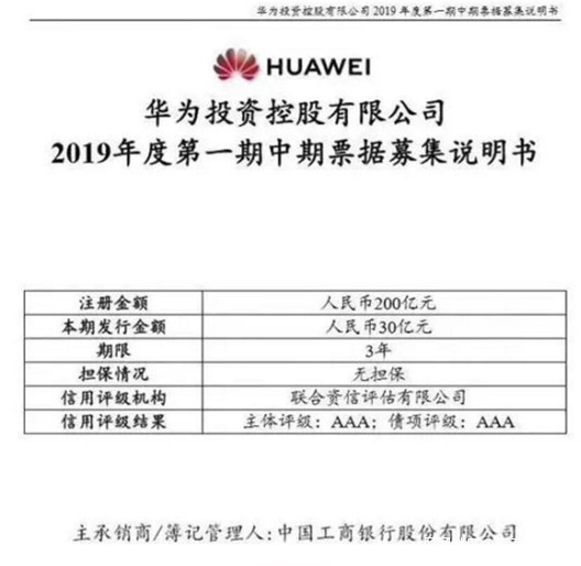9月11日,華為投資控股有限公司低調地發佈了《2019年度第二期中期票據募集説明書》,計劃在境內發行中期票據,募資60億元。