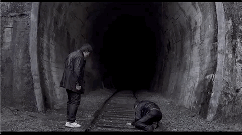 此時鏡頭從隧道深處反打到兩人身上,肅殺的氛圍似在説那句:
