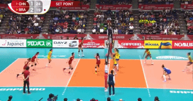 第三局郎平做出調整,李盈瑩披掛上陣增強進攻火力,隊長朱婷也火力全開,幫助球隊在開局後取得領先。但巴西隊也不甘示弱,始終沒有讓中國隊拉開比分。