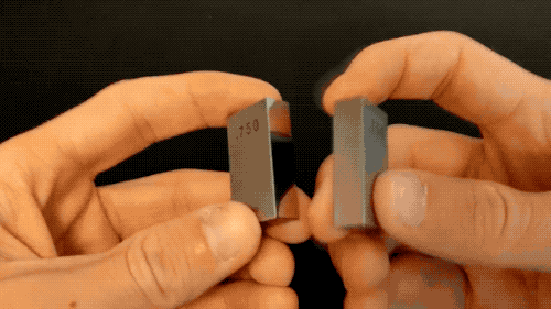 這個塊規有意思的地方在於它的使用過程。實際上,在使用塊規的時候,是用扭合(wiring)的方式讓不同的塊規緊密結合的(之前的那個動圖就是扭合)。這個過程既沒有用黏糊糊的膠水(但有時會用一點水),也沒有用任何輔助工具。