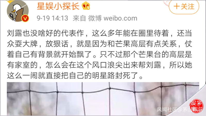 不過,網上有大V爆料稱,這位“公眾人物”劉露之所以敢當眾耍大牌、放狠話,那是因為她和芒果高層有點關係,仗着自己有背景就開始飄了。