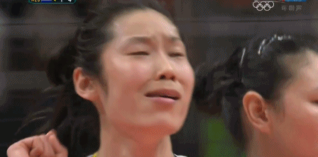 中國女排的主力二傳丁霞,也是中國隊在場上的指揮官。在中國隊局分1-2落後於巴西隊時,丁霞在發球時還給自己怒吼配音打氣“我走你”,非常有喜感。