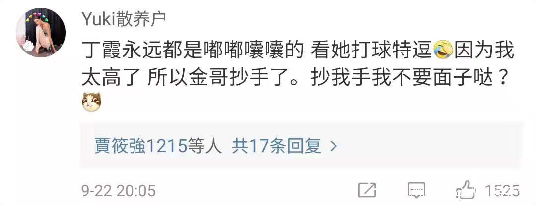 還有資深球迷介紹説,丁霞打球就這樣,永遠都是嘟嘟囔囔的,看她打球特別逗。