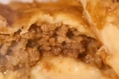 **其次肉葱比例要在1:0.8左右,**這樣的量更能去腥提味,也最大可能地保持了牛肉的味道。也有個別用洋葱的,但據門釘李的師傅説,炒後的洋葱再經由煎制後會軟趴趴,影響口感。