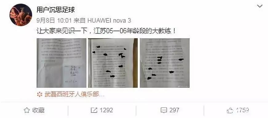 9月8日上午10時左右,微博用户@用户沉思足球 曬出了一封舉報信的照片,並寫道:“讓大家來見識一下,江蘇05-06年齡段的大教練!”如此憤怒的語氣,加上舉報信中令人咋舌的內容,迅速引發眾人關注,讓這條微博獲得了上千次的轉發。