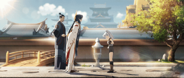 在做第一場庭院那場的時候,因為幼時庭院温馨、寧靜的場景是CG中最美好的時候,網易的陰陽師團隊希望能讓風格比較懷舊、顏色比較有年代感,我們在做的時候就找了一些日本早期的二維動畫作為參考,來體現出一種祥和、懷舊的畫面感。而且即使是樸素的庭院,我們也都體現出了光暈、冷暖色調對比的效果。