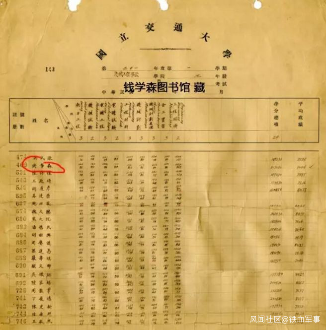 錢學森在國立交通大學讀書期間,成績十分優異,門門考試都是90分以上,下面這張成績單就是錢學森的。