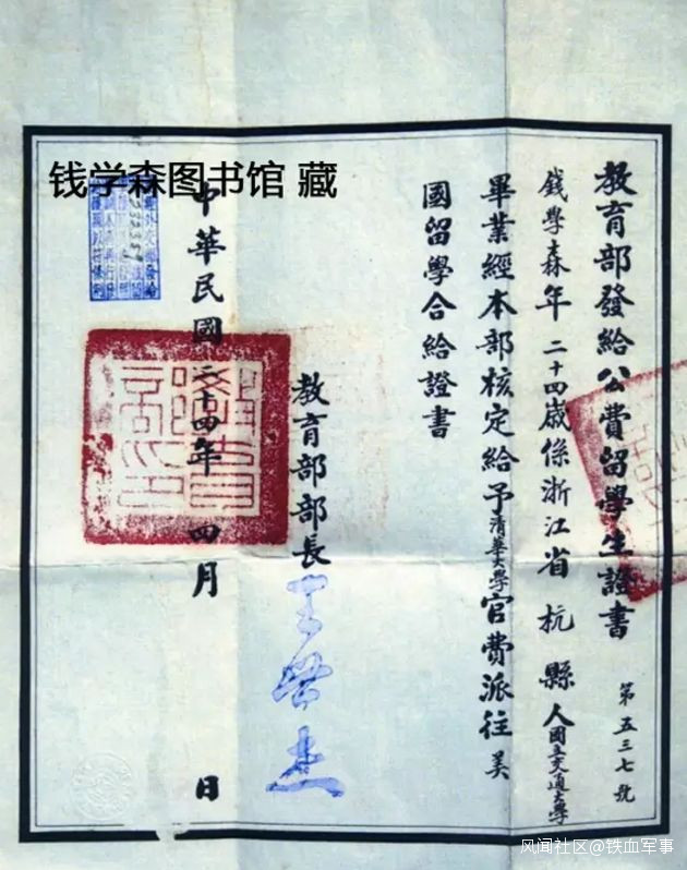 除了專業上的優秀之外,他在畢業時還是“庚子賠款獎學金”中唯一的一個航空留學生。這個獎學金全國只有20個名額!