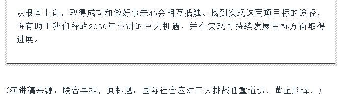 上個世紀60年代,得益於全球化和獨特的治國方略,新加坡經濟快速騰飛,社會公正得到良好實現,“新加坡模式”也因此享譽世界。不過,演講中王瑞傑卻不無憂患地指出,當今世界面臨三大挑戰: