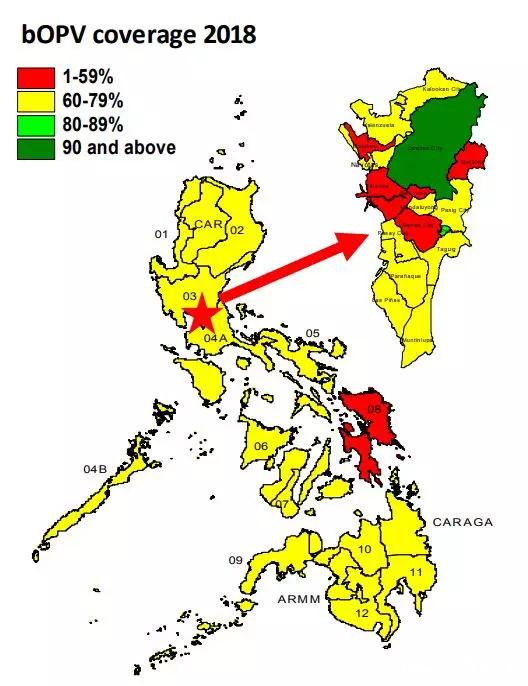 針對Ⅰ型疫苗衍生病毒,8月下旬馬尼拉針對0~59月齡兒童開展bOPV補種,但接種率只有54%,10月份還有第2輪補種。