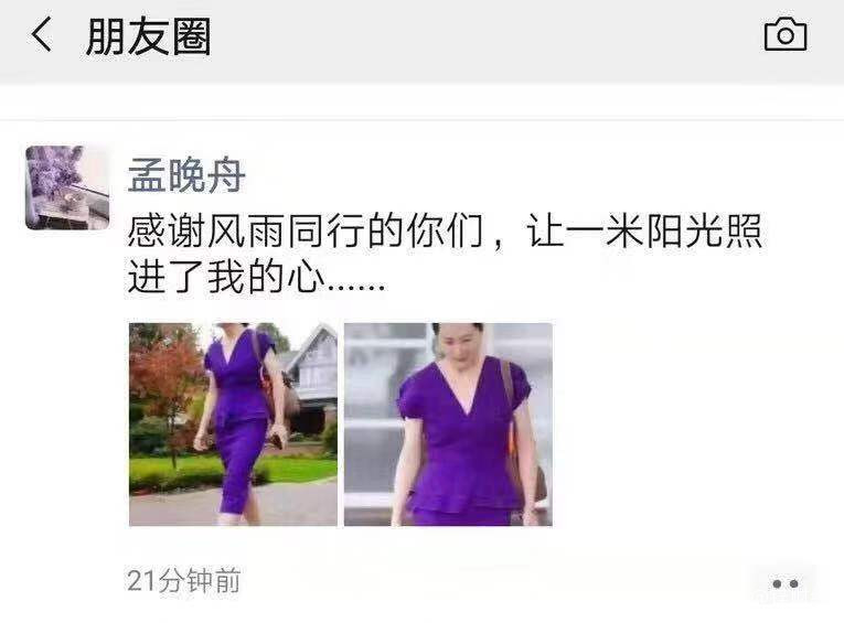(孟晚舟朋友圈截屏,圖片來源於網絡)