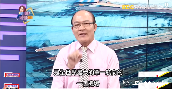 賴憲政在節目中提到,北京大興機場,是全世界最大的單一航向機場。“這個機場到底有多大呢?4萬英畝(約24萬畝)(注:實為4.05萬畝),目前它是花了4年的時間,花了800億人民幣做它的主體,整體工程是4000億人民幣,也就是1.8兆的台幣。整個大機場興建起來,機場目前有4個跑道,2021年它可以承載4500萬人次,最大承載量到1億人次。”