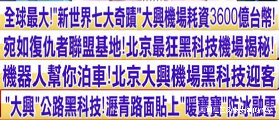 《這!不是新聞》是台灣東森財經新聞台晚間時段的時事新聞、財經談話性節目,在9月20日的一期節目中,主持人陳斐娟和人稱“股市憲哥”的台灣財經分析師賴憲政在提到北京大興國際機場時,詳細介紹了機場的建造規模、設計細節和科技功能,節目全程不住驚歎:“全世界超強的硬體!”“新世界的第七奇蹟!”