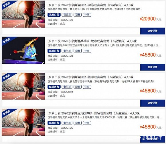以“2020東京奧運開幕式+競技體操觀賽套餐(四星酒店)4天3晚”為例,售價6.69萬元,包括門票2張、全程雙人標間酒店及早餐、接機及東京地鐵3日券、簽證費用和旅遊意外險。