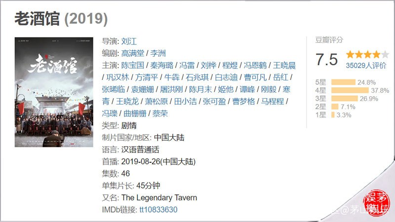 今日閒來無事逛了下豆瓣,無意意又瞥見年代大戲《老酒館》的評分又雙叕降了,從最初開分的8.4,一路是8.3、8.2、8.1、8.0、7.9、7.8、到現在的7.5,至於還會不會再降下去,這個還真不好説。不過,對於豆瓣得分下降這事嘛,人家導演劉江以及出品方都説了,説是有人故意抹黑,還説已經有確切的證據,還説已經報警了。當然,今天咱們不討論這個話題,咱們來看看,觀眾吐槽比較多的角色都有哪些?或者説是有哪些角色最不受觀眾喜愛。