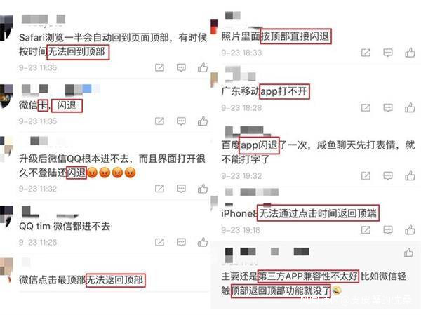 ②不分幾代,大面積出現閃退、點擊頂部無法一鍵返回、卡頓等狀況
