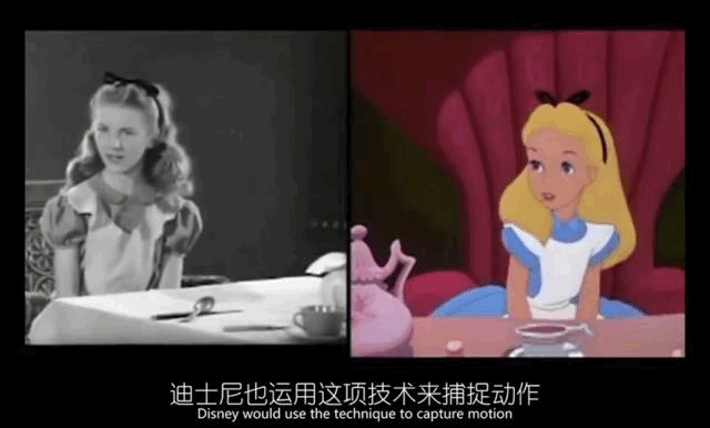 在上個世紀初,迪士尼在**《愛麗絲漫遊記》《白雪公主和七個小矮人》**中,也使用了轉描技術進行動作捕捉。