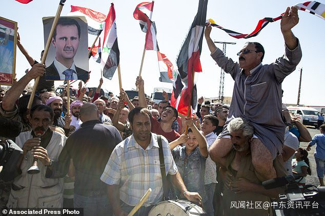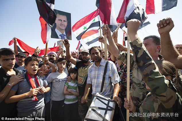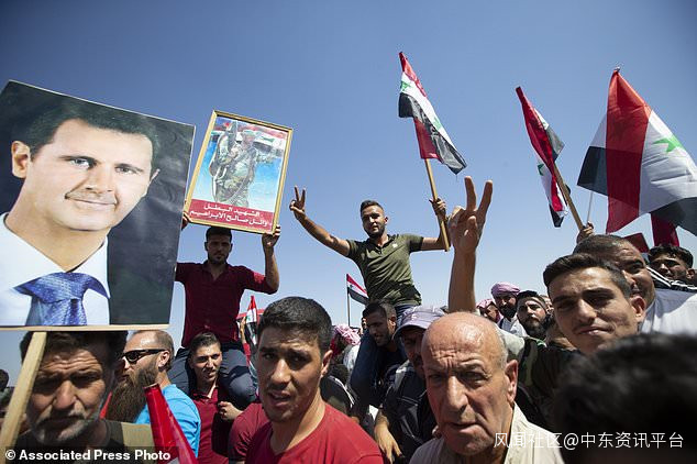 2019年9月25日,星期三,當地居民慶祝敍利亞敍利亞城鎮Sheikhoun的解放。該鎮在敍利亞西北部伊德利卜省擁有戰略要地,在經過數週的大規模進攻後,上個月淪為阿薩德的部隊敍利亞軍隊在俄羅斯軍事支持下獲得支持。