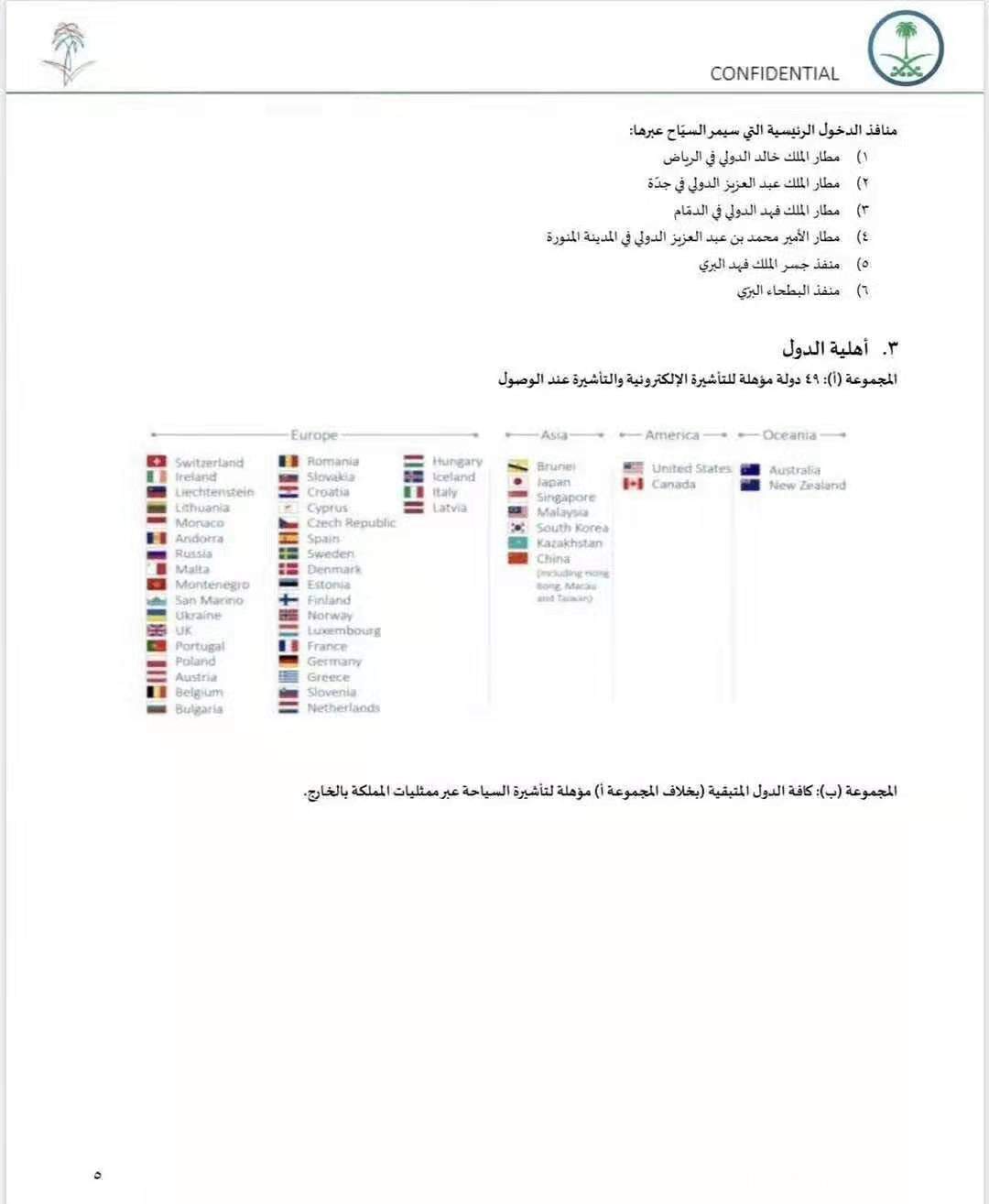 **簽證辦理:**49個國家的遊客可申請落地籤。可在6個到達機場辦理,也可以在沙特的各邊境入口大廳辦理。可落地籤的機場包括利雅得哈立德國王機場、吉達阿卜杜勒阿齊茲國王機場、達曼法赫德國王機場等。據官方透露,線上簽證最快7分鐘就能拿到。