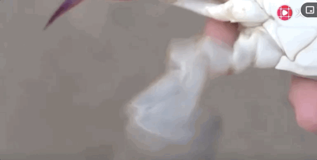 示範時,老闆會用手緊緊摁住蟹的「臍部」。