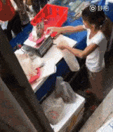 第三步,用裝有臭魚爛蝦的袋子上稱,完成掉包。