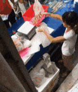 第一步,用袋子裝好你要買的東西,準備上稱。