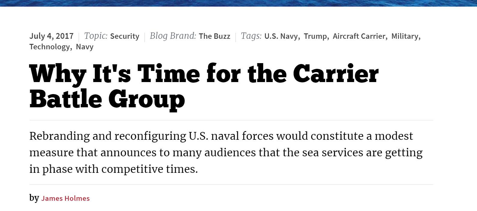 其實這種狀態,美軍自己內部並非沒有人提出過警告——2017年,美國海軍戰爭學院教授詹姆斯·霍爾姆斯(中國人民的老朋友了,《現代艦船》雜誌曾和他就反艦彈道導彈等話題通過好幾次信)就發表了一篇文章,呼籲《現在是時候找回航母戰鬥羣啦!》當然,並沒有人聽他的。