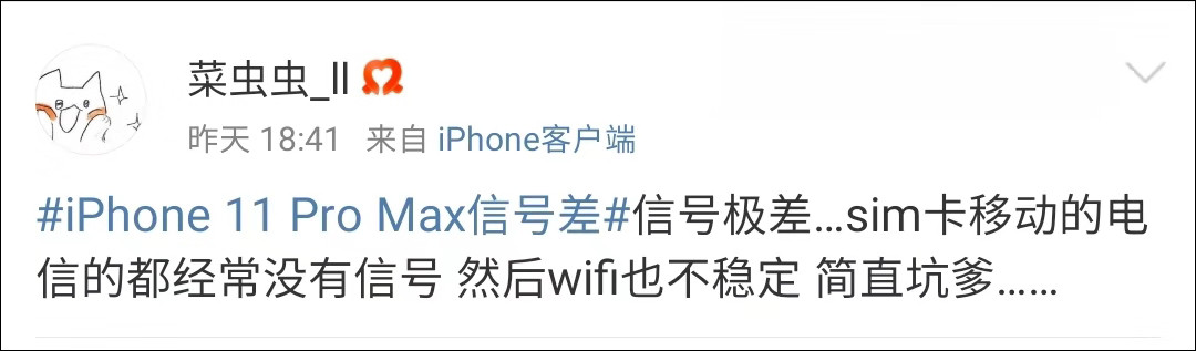 iPhone 11系列上市銷售已經一週多,這款手機有什麼問題也被曝光的差不多了,特別想提醒一下打算買新iPhone的消費者:比起5G,你更應該關注一下iPhone 11系列的信號問題,畢竟沒信號你的手機就是一個大號MP4,連網都沒有,還談什麼5G?