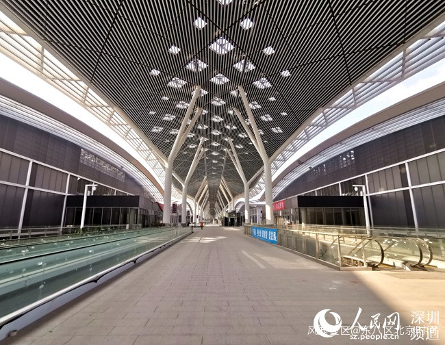 深圳國際會展中心採用“魚骨式”佈局,展廳分列中央廊道兩側。