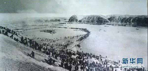 歷史回顧: 1958年9月1日,丹江口水利樞紐工程舉行開工儀式,比預定的開工日期提前了整整一個月。 1958年10月,湖北、河南兩省所屬的襄陽、荊州、南陽3個地區17個縣的10餘萬民工挑着乾糧,帶着簡陋的工具(扁擔、筐子、小木船),彙集到丹江口工地,運載着黏土、砂石,把漢江截流。 **10萬民工發起了“腰斬漢江”的大會戰。**10萬人三班倒,晝夜不停工。那時不到2平方公里,幾萬人在一起施工,白天真稱得上是人山人海。晚上沒有電,照明用火把、汽燈,從採料場到江邊連成幾條火龍。 1968年,丹江口水庫大壩第一台15萬千瓦機組投產發電。 **1974年,丹江口水利樞紐初期工程全部完成。**此時的丹江口大壩總長2.5公里,壩頂高程162米,裝機容量90萬千瓦。水庫蓄水運行至今40多年,經歷過幾次大洪水考驗 ,大壩安如磐石。