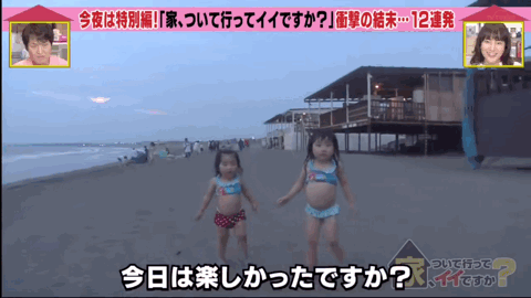 節目組也是很心累,這時候突然看到沙灘不遠處有個媽媽帶着兩個小女孩,彷彿看到希望的節目組,馬上上去搭訕,表示自己是來自東京的電視台,工作人員下場紛紛誇獎小朋友好可愛!(人販子即視感!)