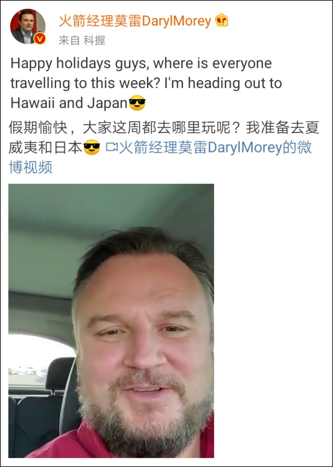 據瞭解,莫雷是在姚明職業生涯的中後期成為火箭隊的總經理的,因此國內不少球迷都對他很熟悉,包括他本人也開通了微博賬號與國內球迷進行互動。