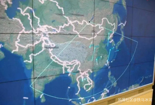 圖②大屏幕可見顯示沃羅涅日DM雷達對中國的預警範圍。