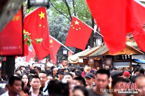 10月3日,成都寬窄巷子景區迎來遊客旅遊高峯,景區內遊客人頭攢動,人山人海。安源 攝