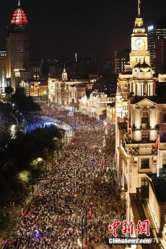 10月2日晚,上海外灘核心區域客流人數最高瞬時值達7.1萬人。中新社記者 殷立勤 攝