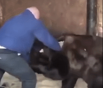 這場人熊對抗十分激烈,45歲的拳手中途掐住巨熊頸部,又將其抵至牆壁。↓
