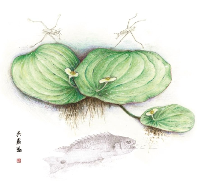 與攀鱸、棕櫚同時代的還有似浮萍這類天南星科水生植物。似浮萍葉是天南星科一個滅絕類羣,素來被認為是真天南星亞科(如芋頭)和浮萍亞科(如浮萍)演化過程中的過渡類羣。發現於藏北的長梗似浮萍葉化石是西藏乃至東亞唯一一例似浮萍葉的化石記錄,並且保存精美,甚至首次保存了最重要的完整的果序和種子。