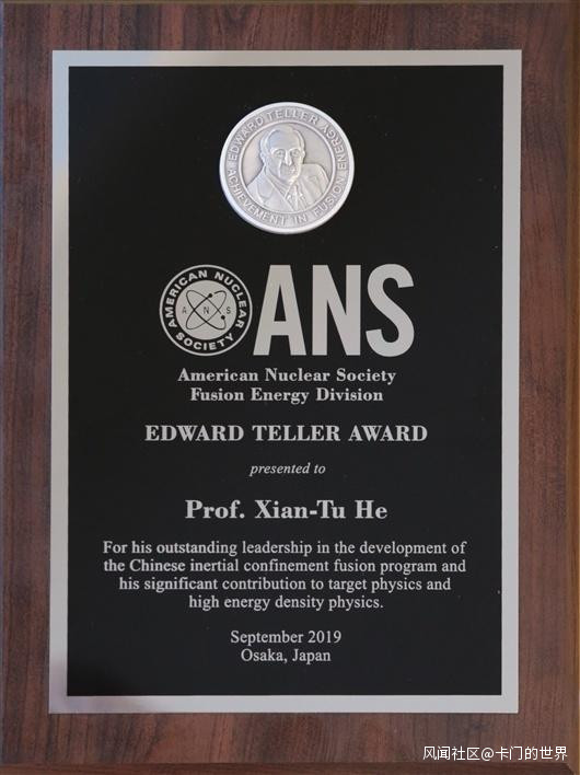 每兩年頒佈一次的愛德華·泰勒獎是世界聚變能源領域最高獎項,由美國核物理學會設立、以“氫彈之父”愛德華·泰勒命名。