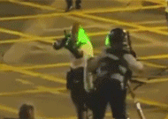 當時我那隊加上另外一隊人加起來有70個人左右,決定一定要抓他們,馬上很強硬。因為你已經犯了法,不會給機會你們反抗。他們是想反抗的,七八個人在前面跟我們打,但是當時他們就是扔磚頭,也都不會用火。我帶隊,跟我們的同事,一起子衝過去,馬上就開棍打。我們叫道,全部跪下,不跪下的話,全部都是反抗的,全部都打。前面那些人被我們打完了之後,後面的人全部都害怕了,全部都跪下了。誰一動,我們就拿警棍打手。接着,我們就找支援來。