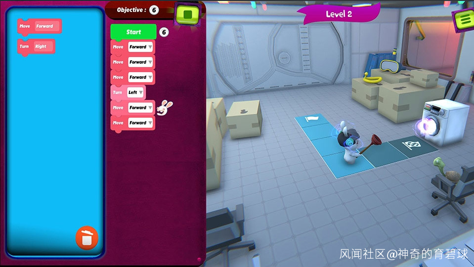 作為一款寓教於樂的全新遊戲,《瘋狂兔子:編程學院》將為人們學習編程提供動力。玩家的任務是清理被瘋狂兔子佔領的宇宙飛船,這一目標可以通過向頭戴“思維控制”裝置的瘋狂兔子輸送簡單的指令,或是將香腸放置在其視線範圍內來實現。