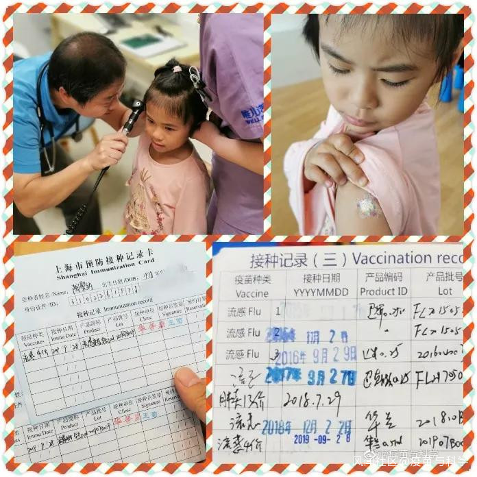 唯兒諾給兒童接種前檢查非常細緻,體温,耳朵,鼻子,心肺都查了一遍。接種過程很順利,接種預充注射器封裝的華蘭生物流感疫苗,疼痛感輕微,陶妞沒哭。接種後還給貼了一個創可貼。接種記錄也很規範,陶妞的接種記錄幾乎滿了,出生第1年2劑,後續都是每年1劑,沒有拉下過。我和愛人也有成人的接種記錄卡。