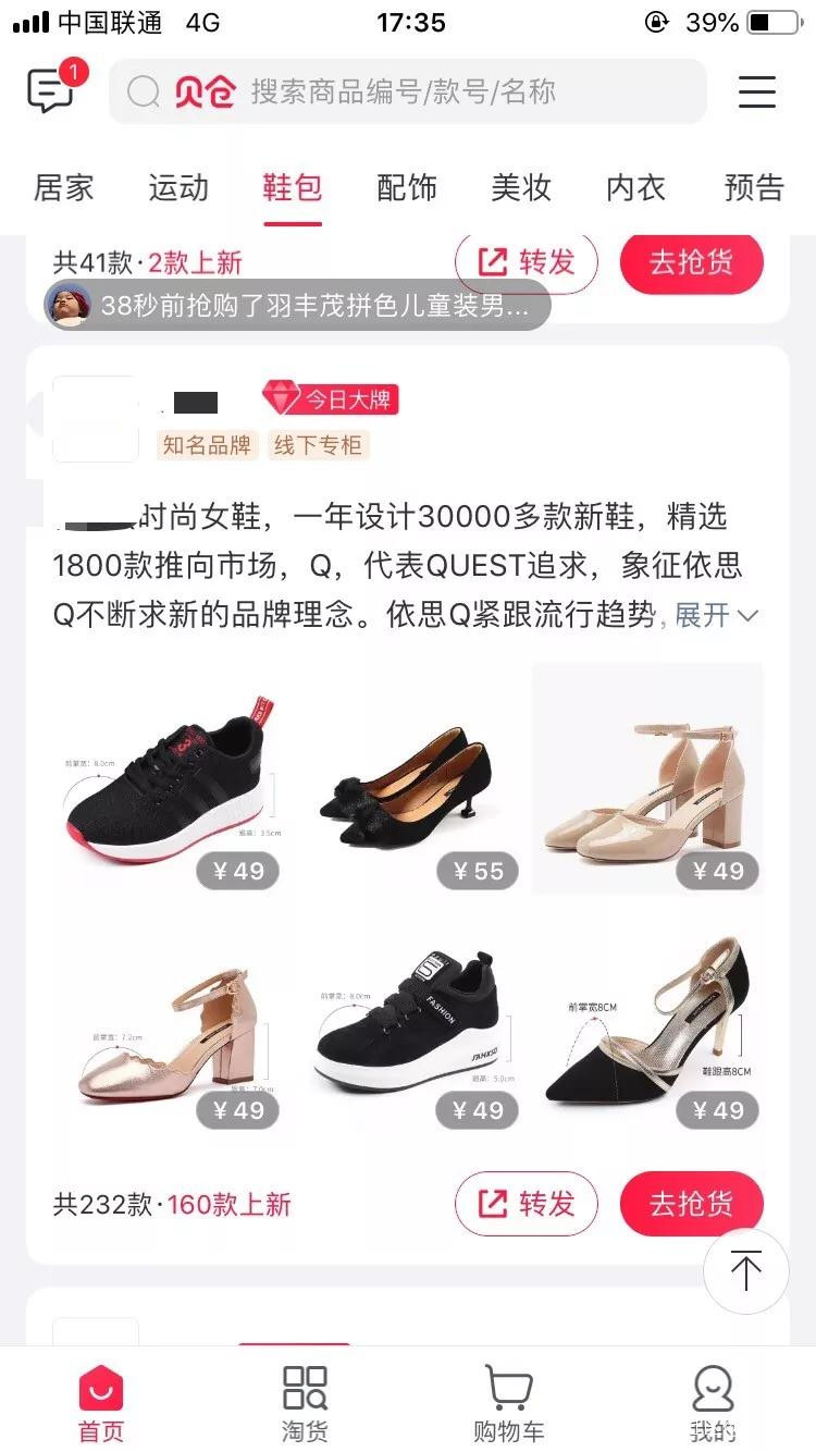 然而優質商品,往往都極為搶手。貝倉曾經售賣過一批韓國女鞋,在試賣時發現銷量不錯,想繼續補貨銷售。但為時已晚,所有貨品已經被其他平台買斷了。
