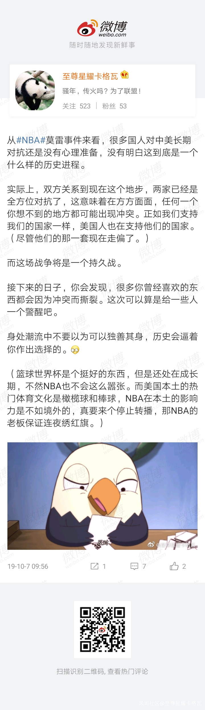 就NBA莫雷言論以及引發的後續影響,貼三則個人看法_風聞