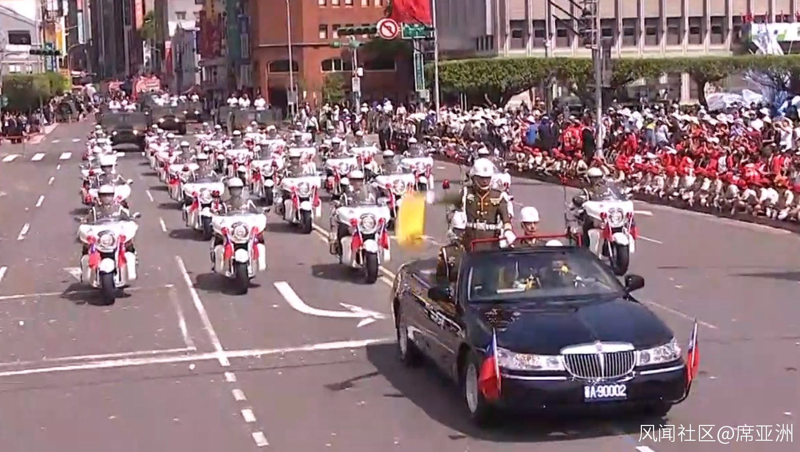 既然有這麼有農村大出殯感覺的花車,當然要配上台灣地區的特色——墳頭蹦迪,這幾位在主席台上扭了整整15分鐘……也不知道偽政權這些高官是不是覺得尷尬
