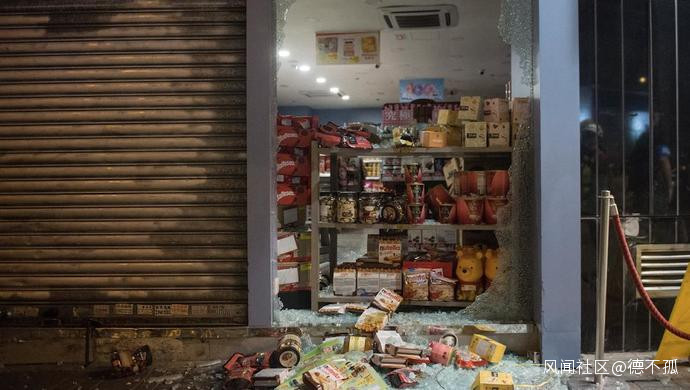 夜色越來越深,電視實拍畫面中的情景也越來越讓人懷疑是否在伊拉克的街頭,而非以“文明、法治”著稱的香港:有人隨意設置路障,有人在牆上亂塗亂畫,有人打砸中資店鋪、金融機構的門面,有人丟擲燃燒彈,有人肆意砸爛港鐵站台設施……伴隨着這些暴力動作的是歇斯底里的喊叫和東西被損壞時所發出的尖鋭聲響。