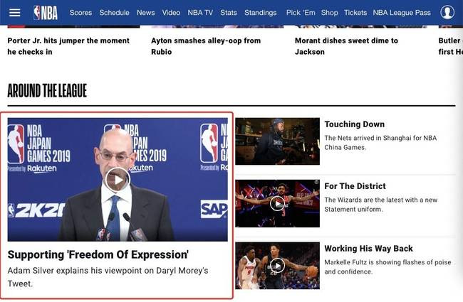 儘管如此,NBA總裁亞當·蕭華(Adam Silver)並未引以為戒,在日本東京召開的記者會上非但未表絲毫歉意,還支持了莫雷的所謂“言論自由”,NBA官網甚至還公開發布這一視頻。