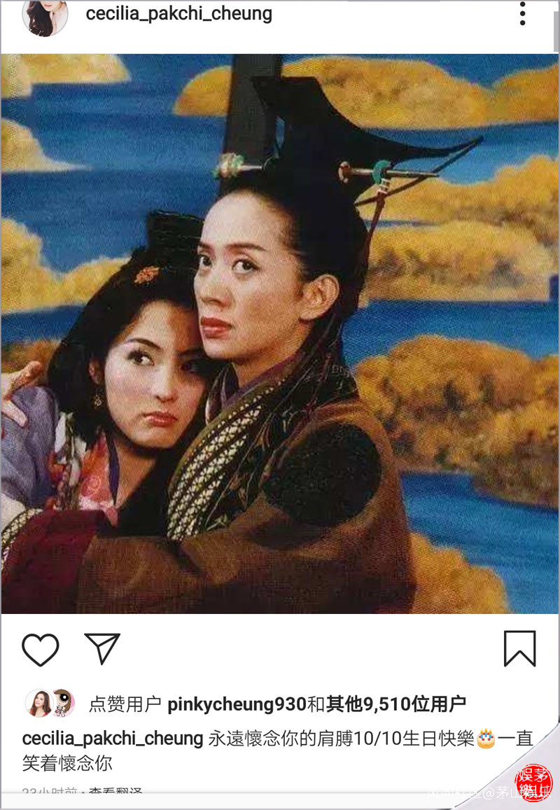 其實,當然除了袁詠儀外,另一位與梅豔芳有過合作的香港女星也在社交平台上發文為梅豔芳慶56歲冥誕,不過,卻因一句配文再次引起粉絲不滿,這位女星就是與梅豔芳合作過電影《鍾無豔》的張柏芝。