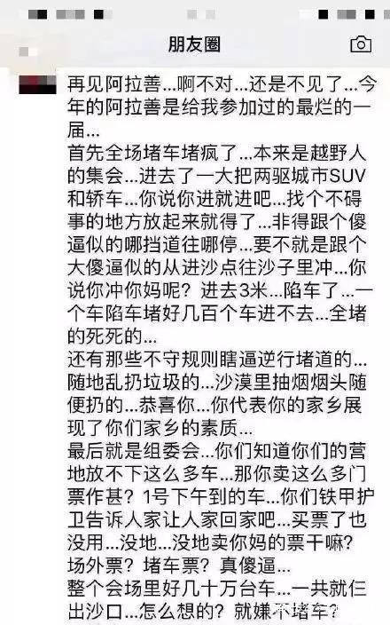 我看到去阿拉善的人下面評論都是這樣亂七八糟,我朋友氣得去罵他們(跟帖的人),我還勸她不要生氣。